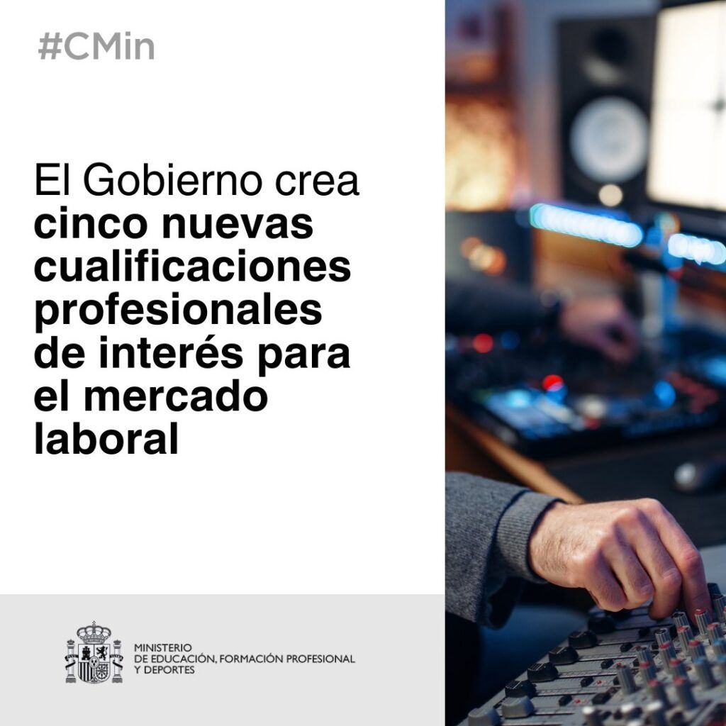 El Consejo de Ministros, a propuesta del Ministerio de Educación, Formación Profesional y Deportes, ha aprobado la creación de cinco nuevas cualificaciones vinculadas a diversas familias profesionales.