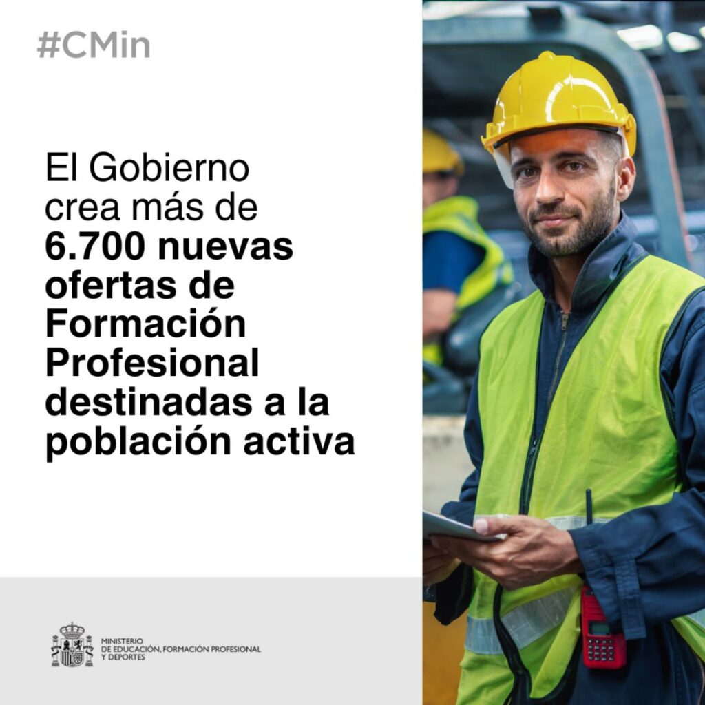 El Gobierno da luz verde a más de 6.700 nuevas ofertas de Formación Profesional destinadas a la población activa